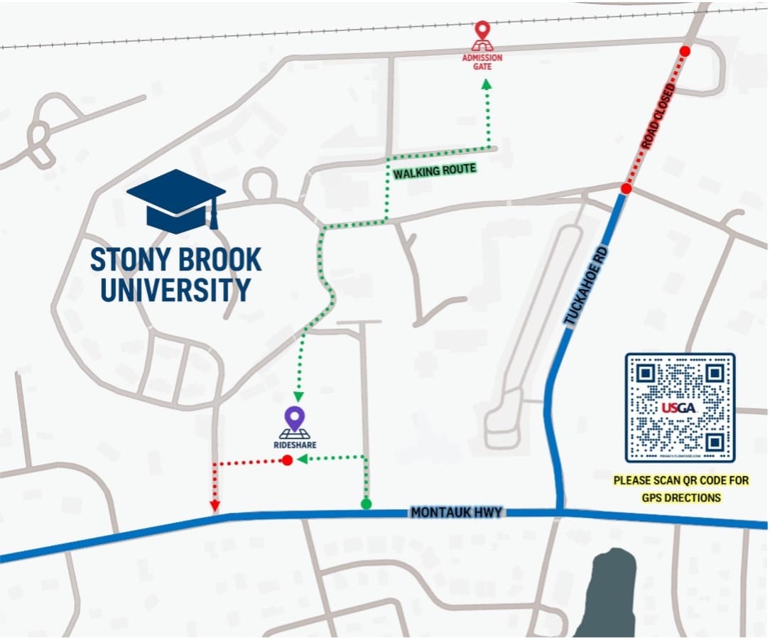 First-Aid Stations will be located throughout the course. All First-Aid stations will be staffed with physicians and other licensed medical practitioners from Stony Brook Medicine. Complimentary water will be provided at all First-Aid Stations and designated hydration stations will be located throughout the golf course. If a medical emergency arises, please notify a volunteer, security personnel, or USGA official.